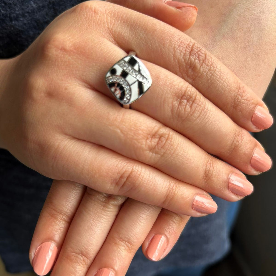 925 Silver Abstract Essence Enamel Ring - Black and White- Regular price